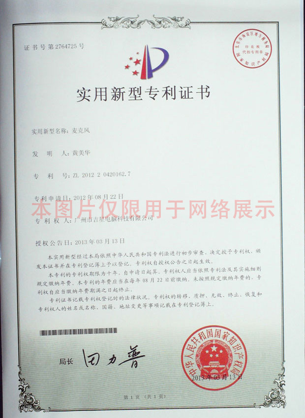 實用新型證書--麥克風