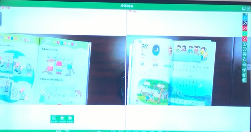 老師可通過投屏搶答、課堂搶答功能,同學們開始搶答,最先搶到的同學的桌面畫面會顯示在大屏