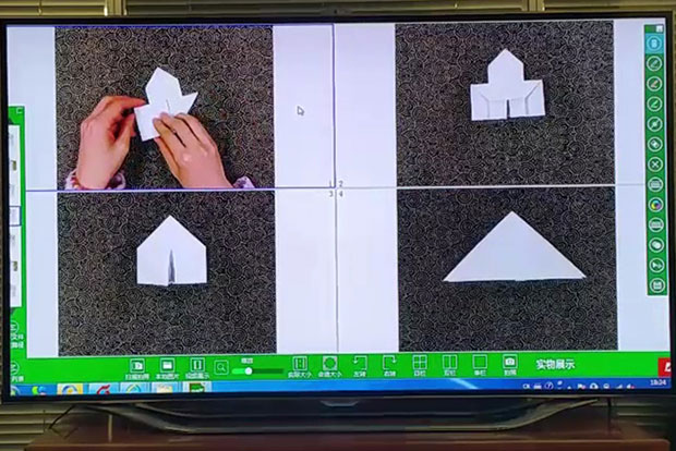 廣西興業縣小學老師用吉星展臺多屏對比展示手工過程