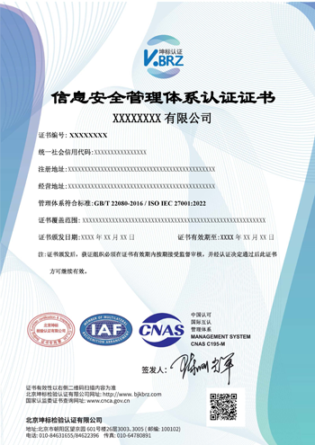 | 評價認證證書模板 | ISMS無標志證書模板 |